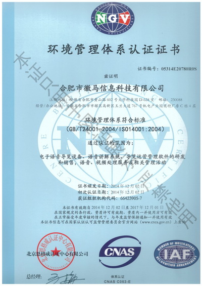 鹰米讲解器系统荣誉证书